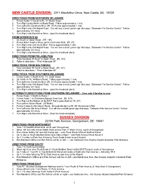 DIRECTIONS FROM SOUTHERN DELAWARE