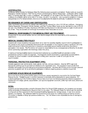 Certificates will be provided for Delaware State Fire School courses successfully completed. Pocket cards are issued for