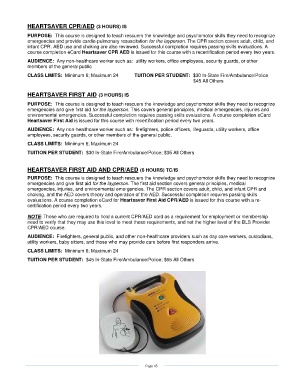 CLASS LIMITS: Minimum 6; Maximum 24 TUITION PER STUDENT: $30 In-State Fire/Ambulance/Police